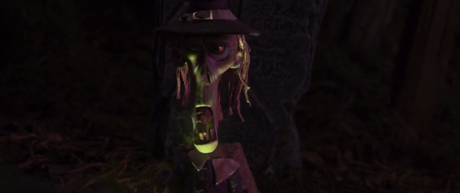 -The creepy imagery is just spooky enough to appeal to younger viewers. Coraline is much scarier, but the witch’s face in the clouds, the initial appearance of the zombies, a jagged, talking face in a tree, and even some haunted toilet paper are properly creepy.