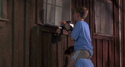 Ally has eyes for Sean, which in turn causes her to hate Molly. There’s an astonishingly clumsy sequence in which Rob (Terry Hobbs), a blathering counselor, or camper (who knows?) tries to impress Ally by listing his accomplishments (the saxophone is sexy as fuck). She removes her top under her white shirt and reverse psychologies him to toss her into the pool just so she can pop up and show her jubblies to a disinterested Sean. That little shithead from the beginning comments on her “party hats,” which was originally “nips” until visiting representatives from the Georgia Department of Labor insisted that a child under eighteen years of age couldn’t utter the word “nips.”