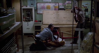 The survivors decide to lock Freddy and Frank in the chapel, but Tina unwisely refuses to leave Freddy’s side. His eventual transition into full-zombie goes over about as well as you'd expect. He lashes out at her and demands brains, but Tina’s just not that kind of girl. Ernie manages to throw acid in Freddy’s face, causing blindness and resulting in what makeup artist Kenny Myers (Dead Heat, Star Trek VI, Humanoids from the Deep) referred to as the “Kabuki ghoul” prosthetic. Frank has escaped and was originally going to end up as another faceless zombie amongst the group, but James Karen came up with a brilliant and genuinely moving alternative. He removes his wedding ring and burns himself in the crematorium, a fitting and altogether more dignified end for a man who was just trying to impress a youngster. A running joke that elevates the absolutely desolate situation is the constant arrival of paramedics and police officers. The zombies are practically ordering pizza and it’s wildly funny when the police set up a pathetic barricade and are set upon by the fast-moving horde, another major step-forward as this film is often regarded as the first “fast zombie” movie, if you ignore Umberto Lenzi’s Nightmare City (1980). Chaos ensues outside and the situation is genuinely hopeless. This makes the film’s “final solution,” to use a term Ernie’s namesake may have used, both appropriate, ironic, and horrifying.